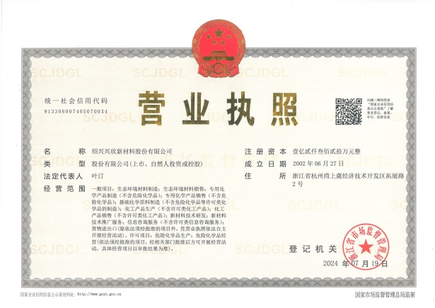 紹興興欣新材料股份有限公司成立于2002年06月27日,占地面積122畝,位于杭州灣上虞經(jīng)濟技術(shù)開發(fā)區(qū)拓展路2號,現(xiàn)有職工200余人,專業(yè)技術(shù)人員50余人;博士、碩士研究生30余人組成的一支知識型、專業(yè)化的技術(shù)科研團(tuán)隊。公司面向全球市場,專業(yè)開發(fā)電子化學(xué)品、環(huán)保化學(xué)品、醫(yī)藥中間體、高分子材料等先進(jìn)新材料重點領(lǐng)域的省級科技型企業(yè);建有浙江上虞、安徽東至兩個生產(chǎn)基地。目前為“國家高新技術(shù)企業(yè)”、浙江省“隱形冠軍”企業(yè)、浙江省專精特新中小企業(yè);建有“省級”研究開發(fā)中心,共建天津大學(xué)浙江紹興研究院電子化學(xué)品研發(fā)中心。